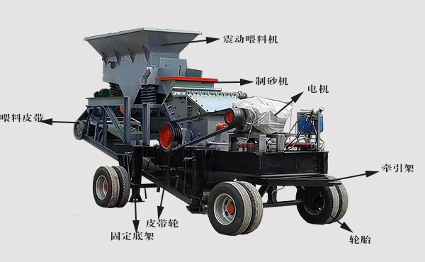 移動制砂機在工作時,給料機、篩分、破碎設備協調作業,符合粒度要求的石料首先進入破碎機進行破碎加工,破碎之后進行篩分,合格的物料才能進入制砂機內進行制沙加工,合格的沙子成品由出料裝置排出,未達標的則返到機器內繼續進行加工處理,直至符合成品力度要求為止。